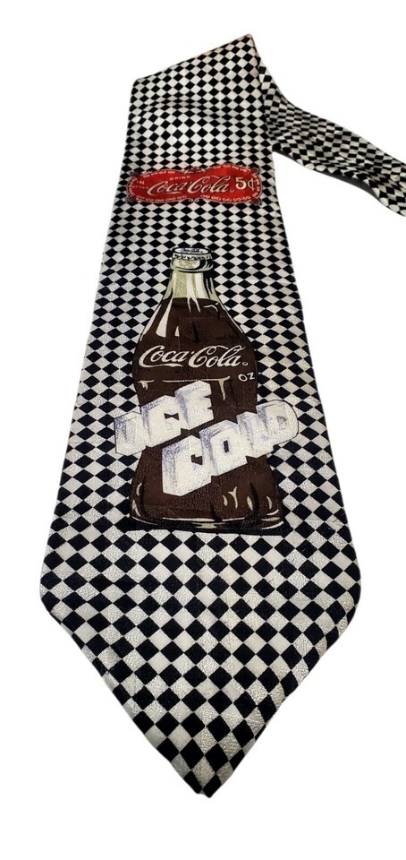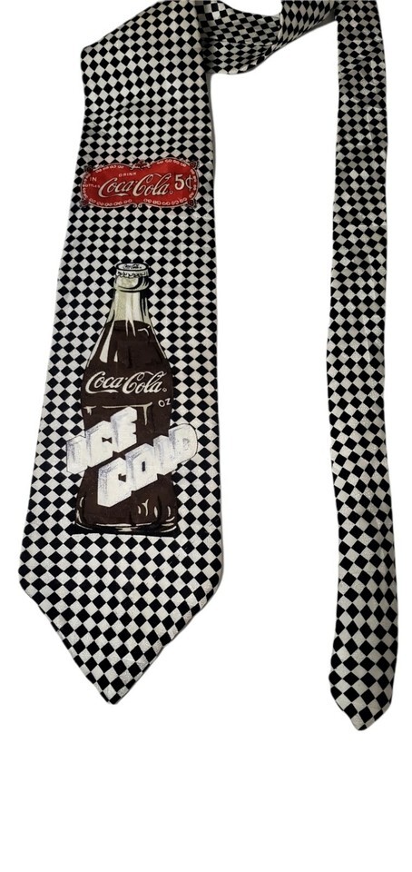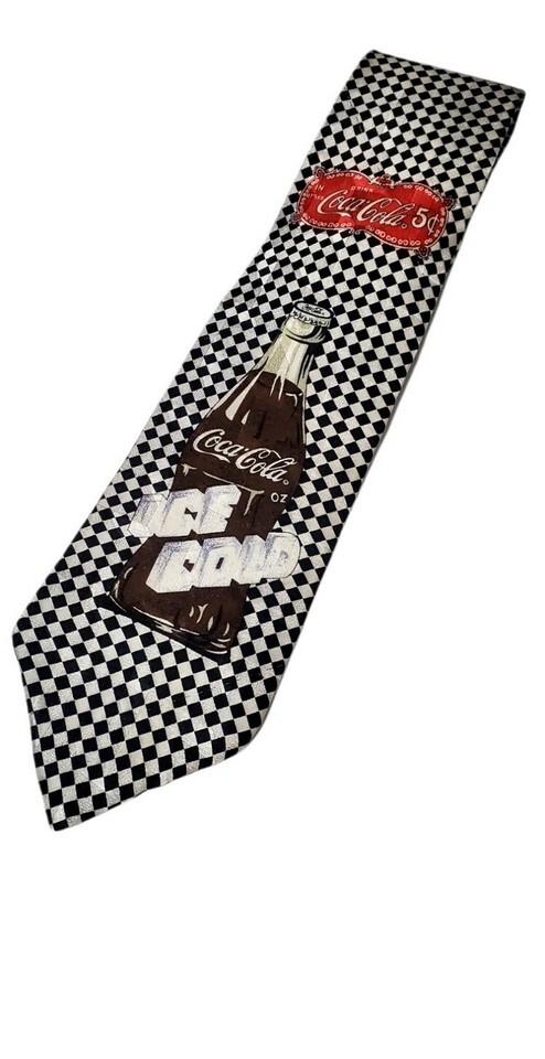 - Coca-Cola Ice Cold Men's Tie Coke Bottle Necktie Black White Checkered 100%Silk