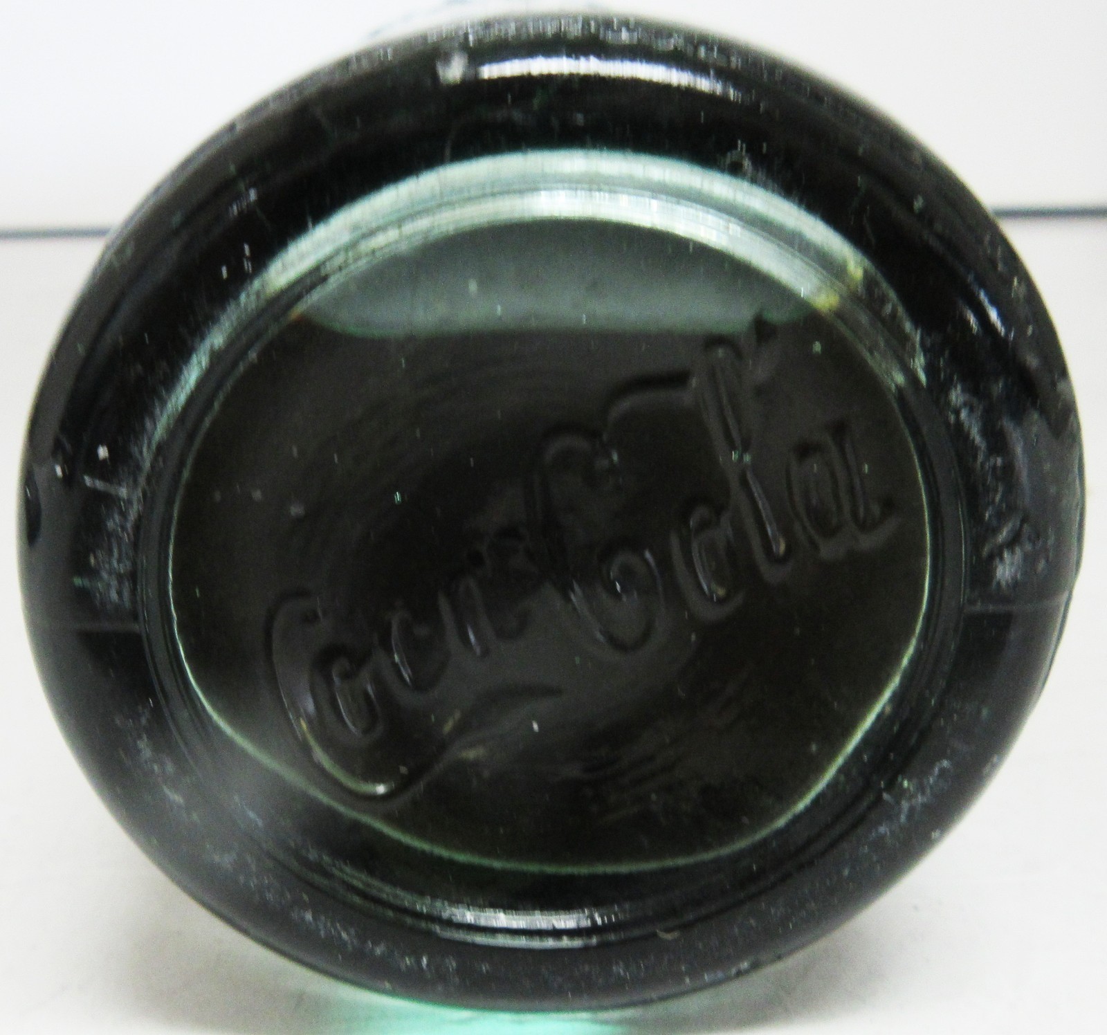 On the bottom of the bottle embossed "Coca-Cola" logo