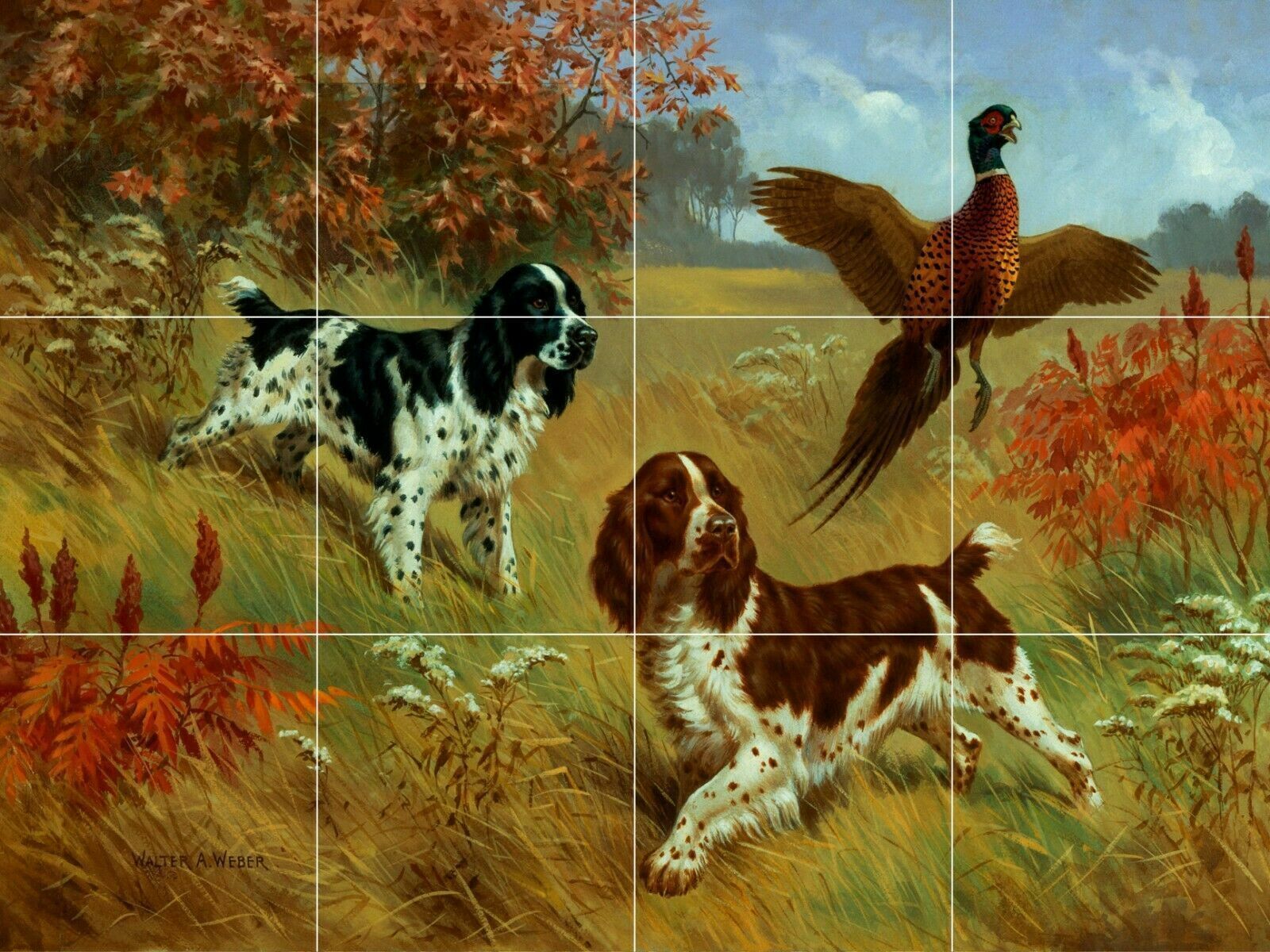 - cocker spaniel bird hunting dog pheasant CERAMIC TILE MURAL BACKSPLASH MEDALLION