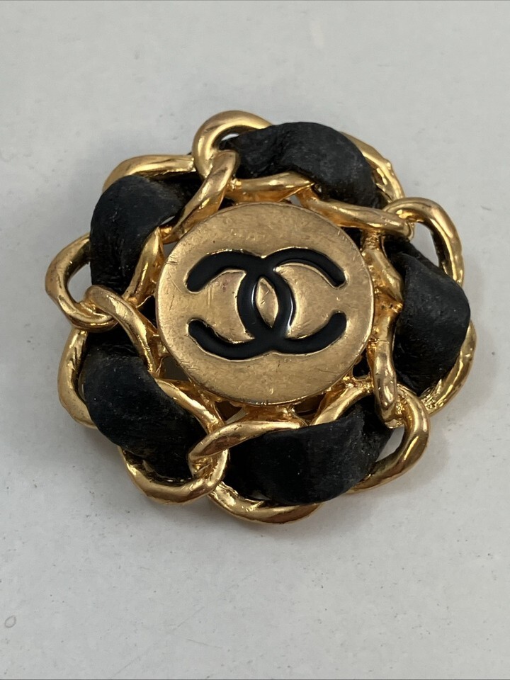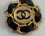 - Coco Chanel Signature Metal & Leather Clip On SINGLE Large 1980s 1.5” Earring