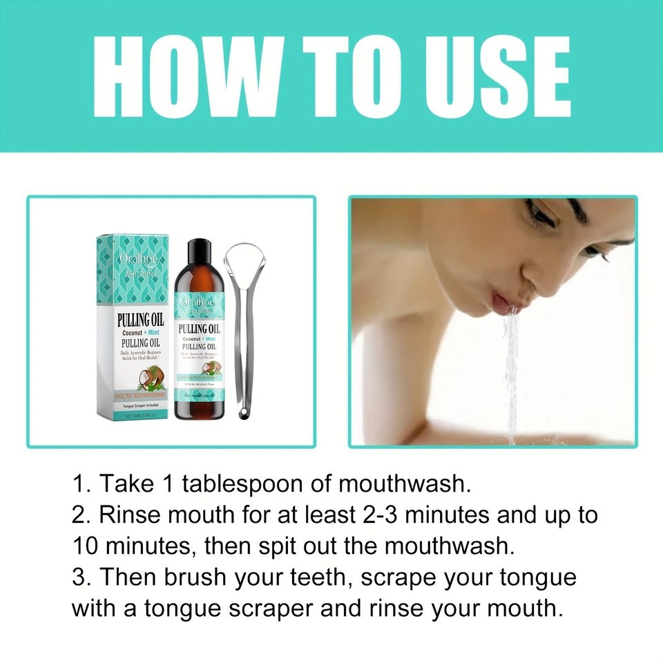 - Coconut Mint Pulling Oil Mouthwash | Natural Whitening | Alcohol-Free | Scraper