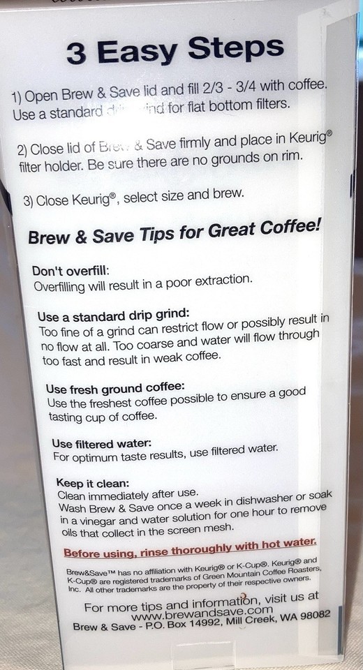 The Brew and Save Reusable Coffee K-Cups are specially designed for use with Keurig 2.0 and 1.0 brewers.