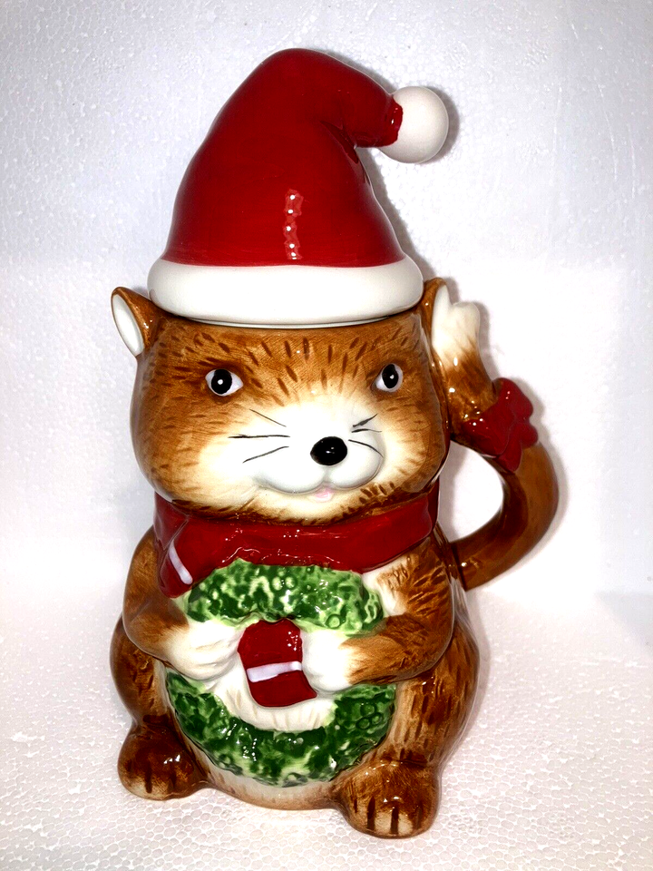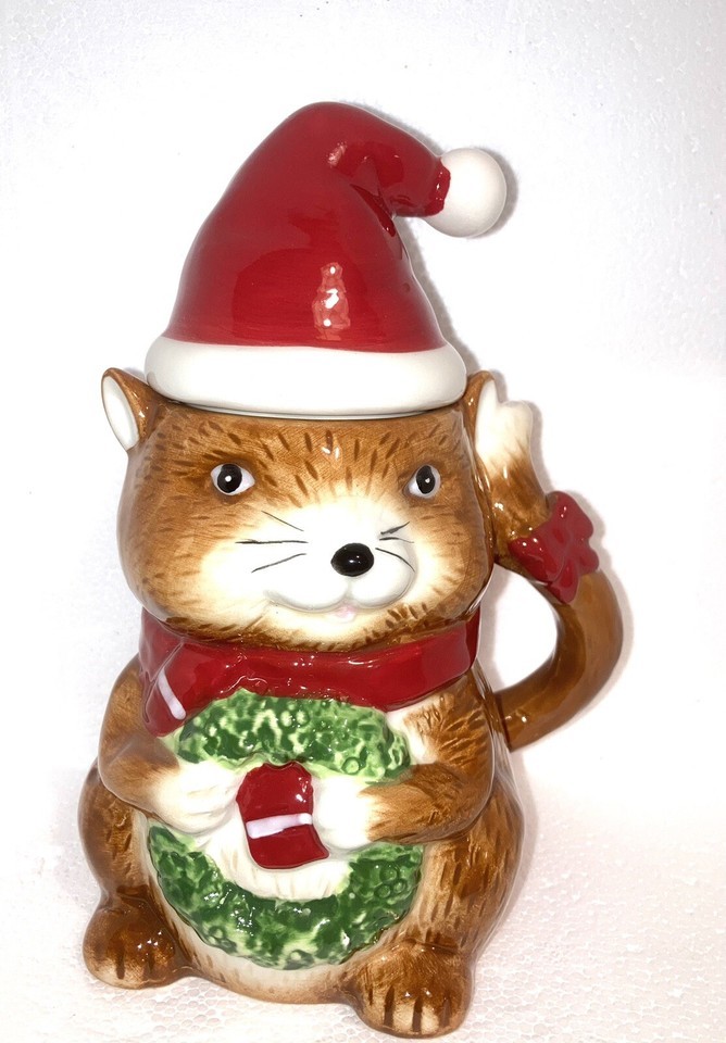 Global Design 16oz Ceramic Christmas Squirrel Coffee Mug 7 in tall (w/lid on)