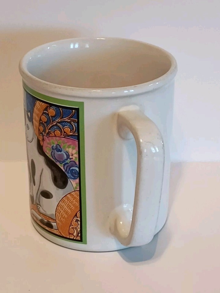 - COFFEE MUG CUP BEAUTIFUL MULTICOLOR CAT THEME PATTERN