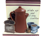 - Coffee Pot Cup and Bean Bag Coaster Set Holder Brown Tan Blue 5-pc Gift NEW