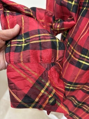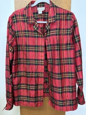 - Cold water Creek Red Plaid Silk Top Womens Sz L Tartan Holiday Christmas Classic