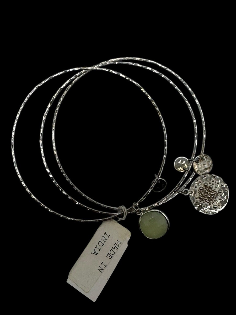 - Coldwater Creek 925 Hammered Silver Bangle Bracelets Stacker Set 3 Charms READ