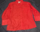 - Coldwater Creek Red Textured Blouse Women’s Medium Button-Up Long Sleeve Shirt