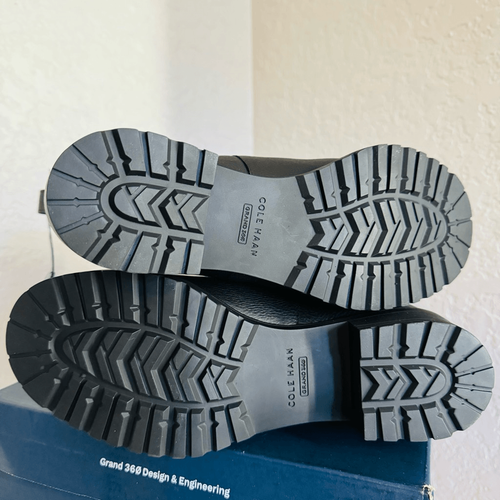 - Cole Haan Camea Waterproof Leather Combat Boot, Block Heel Black, Size 7.5 NWT