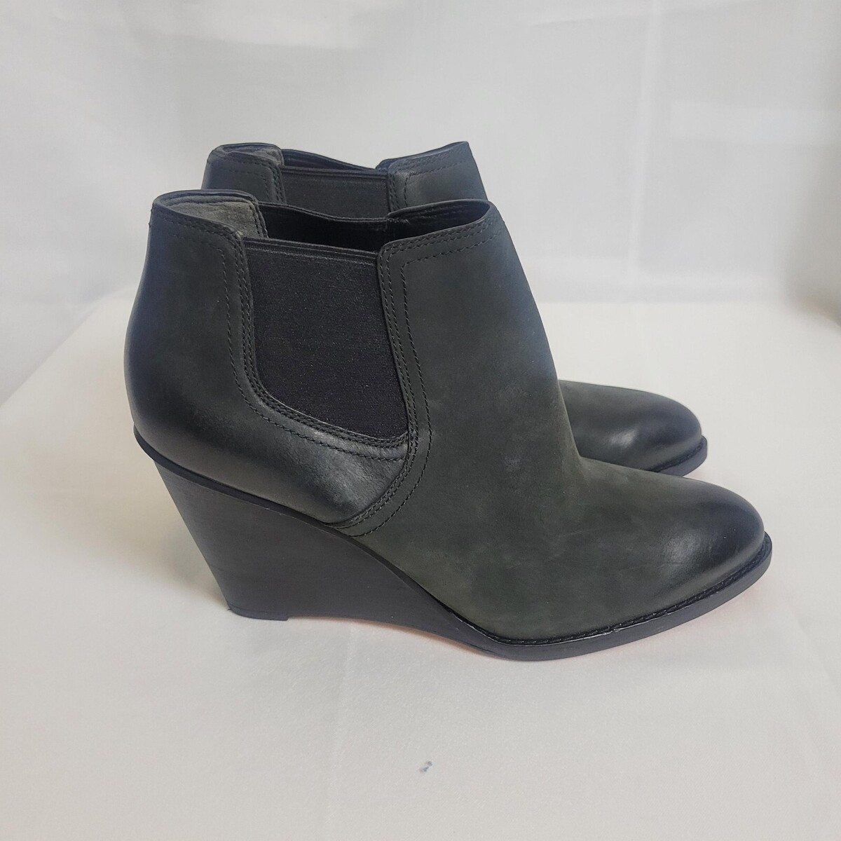 - Cole Haan Grand Os Balthasar Black Nubuck Leather 3" Wedge Ankle Boots sz 10B