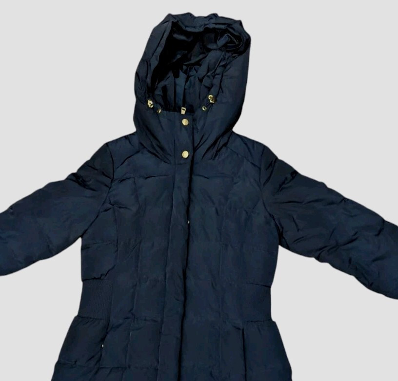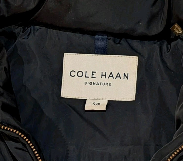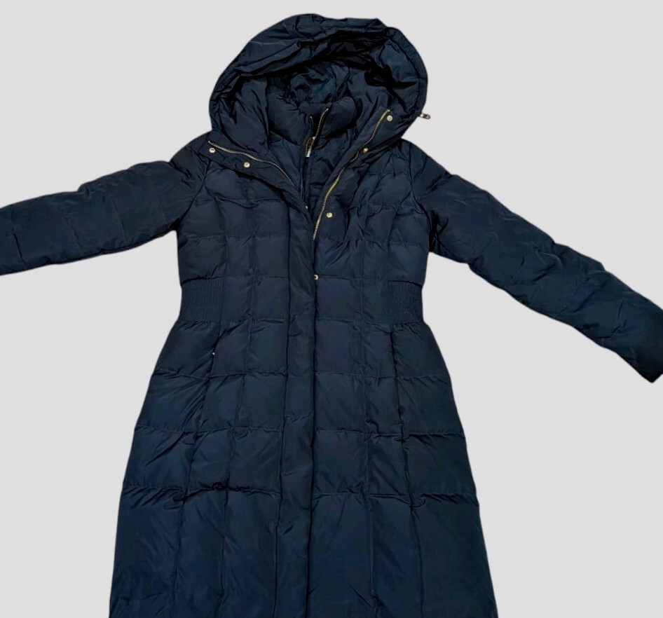 - Cole Haan Signature Quilted Down Coat Sz Small Knee Length Navy Blue Downfilled