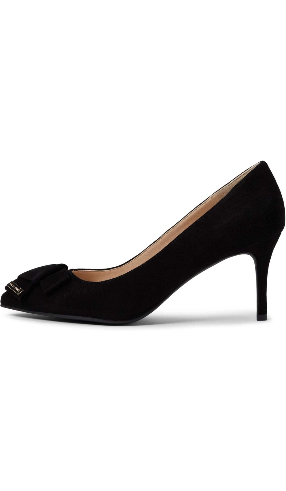 Cole Haan Women's Ina Pump High Heels Get event-ready wearing these elegant Cole Haan Ina Pump (75 mm) Heels and look gorgeous. Leather upper and lining. Slip-on style. Pointy toe. Bow on front.