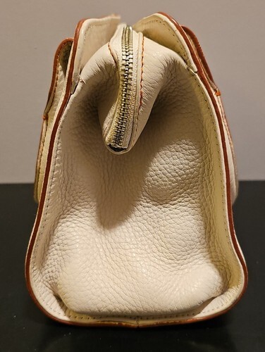 This bag has been cleaned to the best of my ability--it may still have some staining on the lining and will need further attention from the buyer.