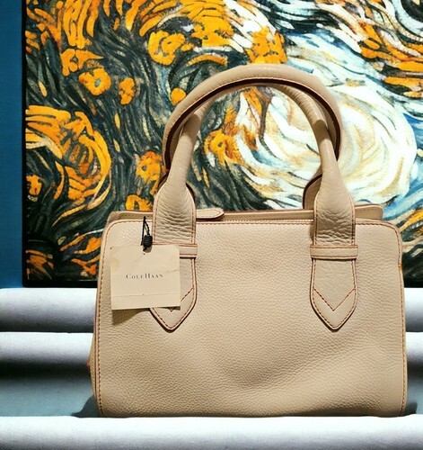 - Cole Hann Small Tote Stone/Sunset Pebbled Leather Double Handled Bag Purse NWT