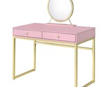- Coleen Vanity Desk w/Mirror & Jewelry Tray, Pink & Gold Finish
