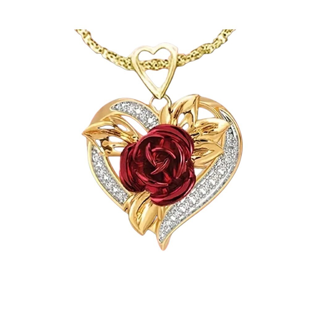 Este colgante rosa rojo con diamantes de imitacion es un collar elegante con un colgante en forma de corazon adornado con diamantes de imitacion blanca. La combinacion del diseño de Red Rose y los diamantes de imitacion espumosos agrega un toque de romance y glamour a cualquier atuendo. Hecho de material de alta calidad, este collar colgante es un accesorio de moda que se puede usar durante varias ocasiones para elevar su aspecto.