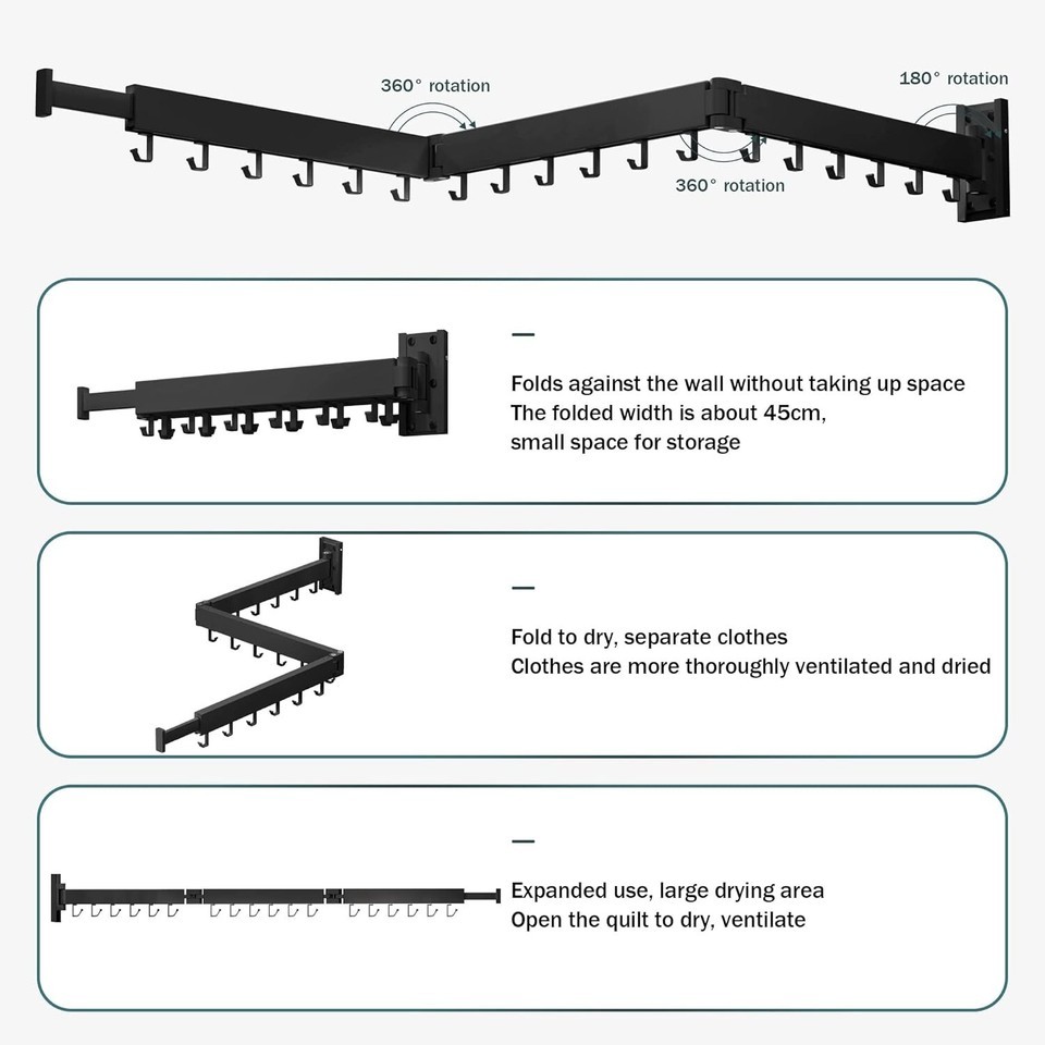 Elevate your laundry experience?experience the efficiency of a well-organized drying area. Order your Collapsible Wall-Mounted Clothes Rack today!