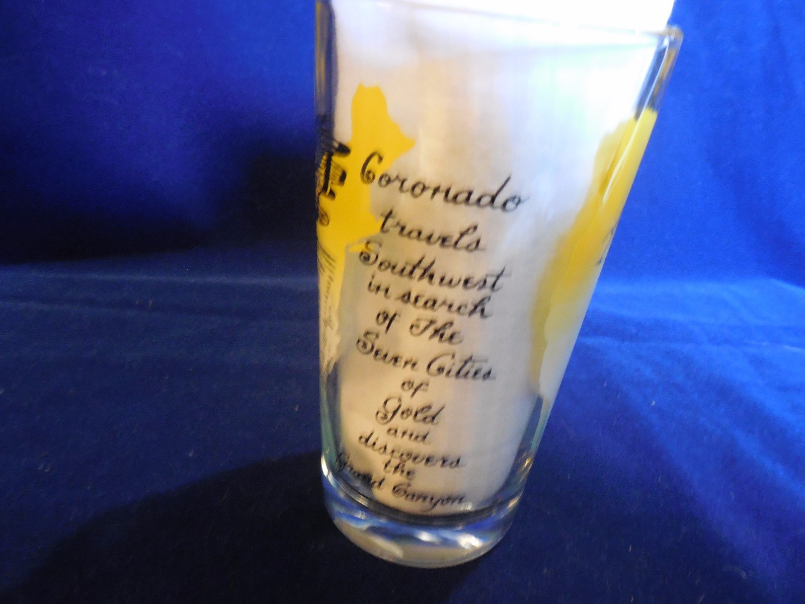 DESCRIPTION: Vintage collectible glass "Coronado's Travels" I dont know the date nor do I know what promotion. Pictures are part of description.
