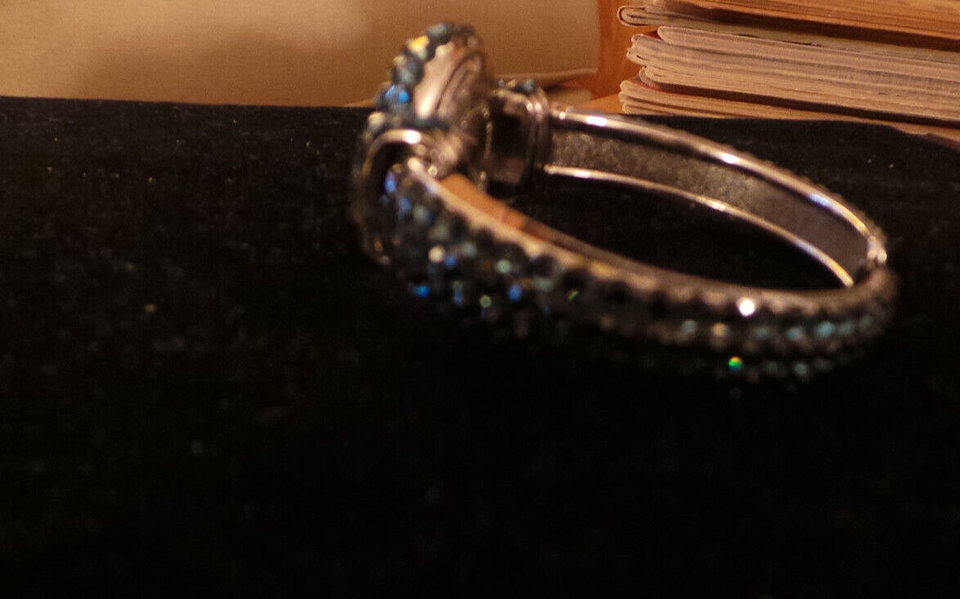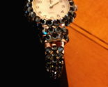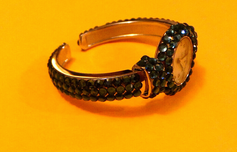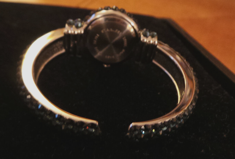 Collezio Bracelet Watch w Blue Sapphire Swarovski Crystals. . the crystals go all around. its a bangle type watch and is flexible and can fit larger wrists. Quartz, Japan Movement; Stainless Steel back; metal Bezel