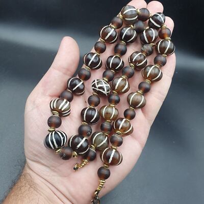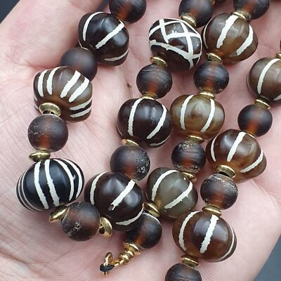 Lot 22 perles d'agate decorees gravees avec perles de verre anciennes