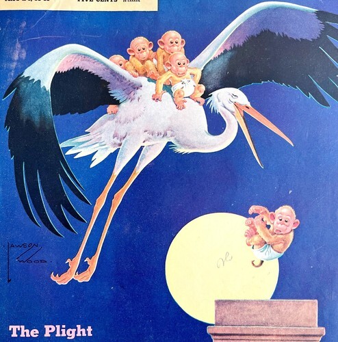 - Collier's Baby Monkeys Stork 1941 Lithograph Magazine Cover Antique Art DWCC1