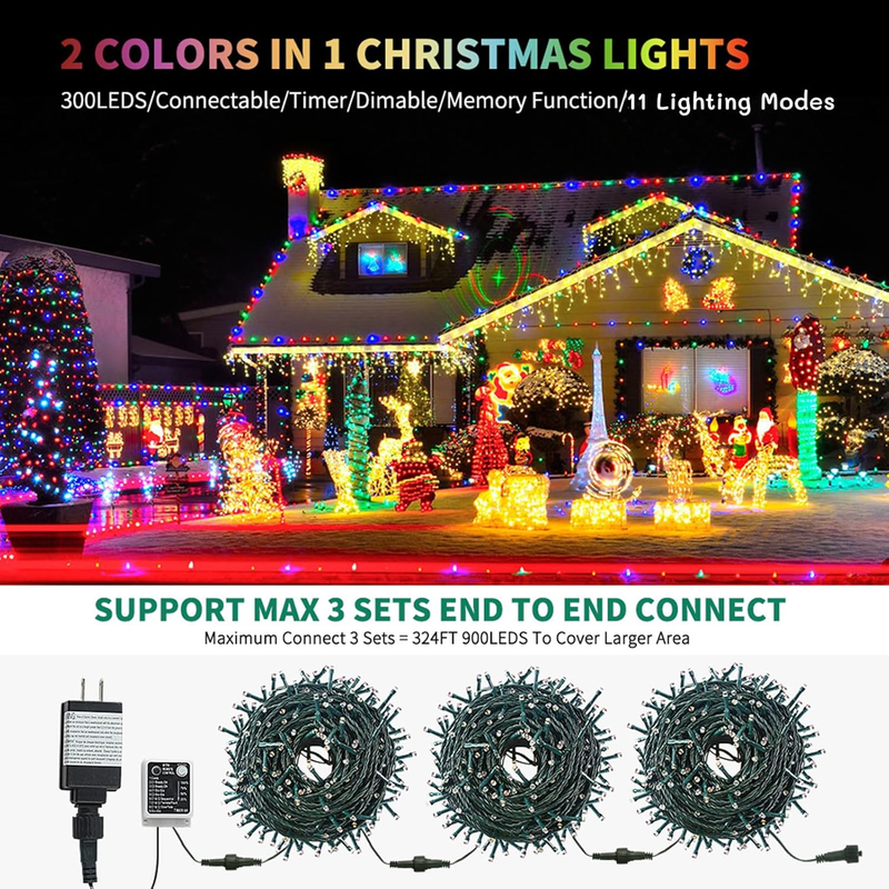 - Color Changing Christmas String Lights Outdoor Indoor, 108FT 300 LED