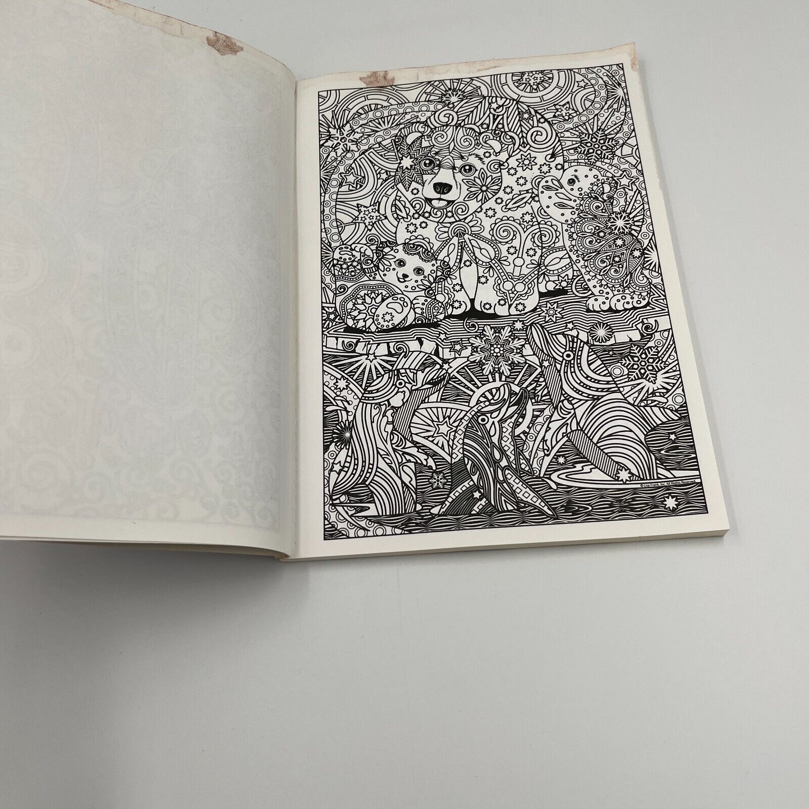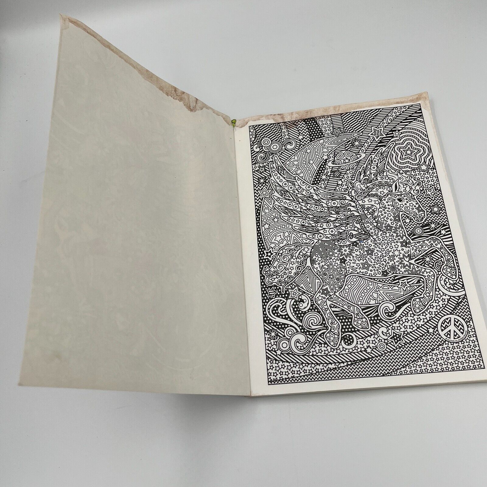 Never been colored in. Does have some staining on some of the pages and front/back cover. See pictures for details.