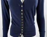 - Color Story Cardigan Sweater Size Medium Navy Blue Snap Up V Neck Womens
