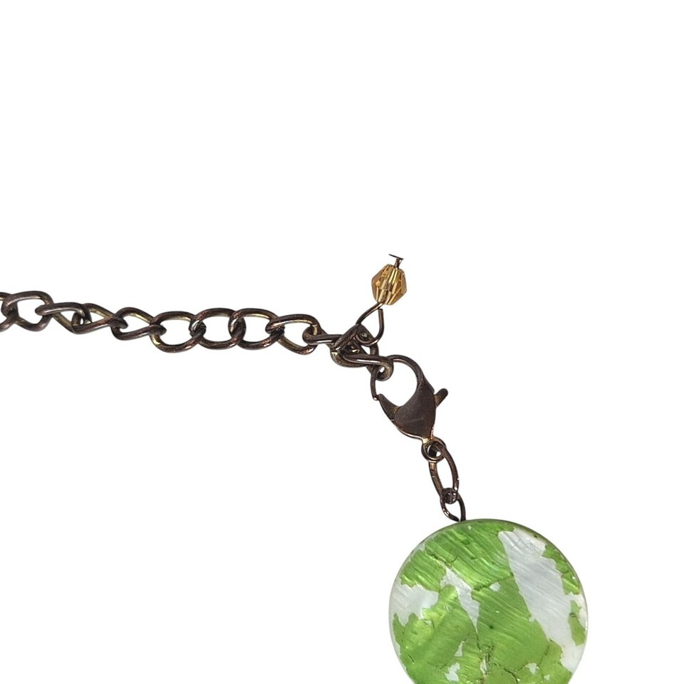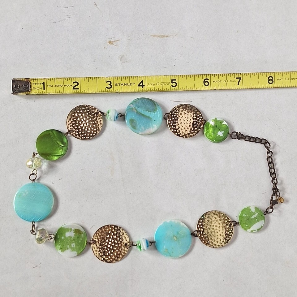 - Colorful Green & Blue Disc Necklace With Hammered Gold-Tone Accents Boho Jewelry