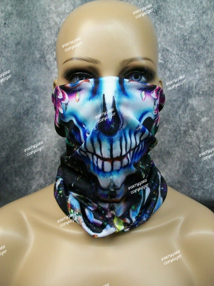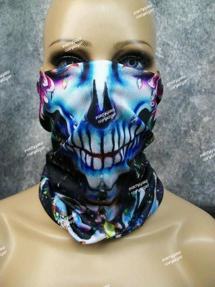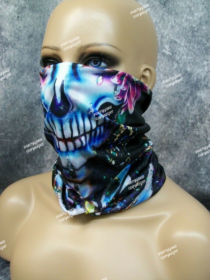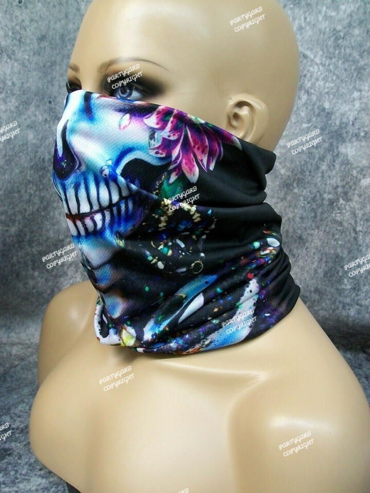 - Colorful Jeweled Lady Skeleton Face Mask Neck Gaiter Costume Day of Dead Beauty
