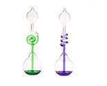Hand Boilers are looped in the twisted glass sculptures containing a liquid that will "boil" as heat is transferred from your bare hand. Simply hold the large bulb end on the bottom in the palm of your hand and within minutes, your body heat from your hand will cause the liquid to rise. Once out of your hands, it takes a few minutes for the liquid to cool down. Pretty fascinating science toy and an excellent demonstration of energy transfer.