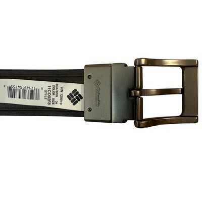 Classic Columbia men's reversible leather belt in rich black and brown tones. Brushed gunmetal swivel buckle easily flips for two-in-one styling. Genuine leather strap with sturdy stitching and a smooth finish. Size 34. New with tags.