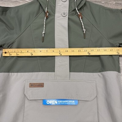 - Columbia Green Beige Lightweight Windbreaker Pullover Rain Jacket Hood Sz Small