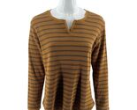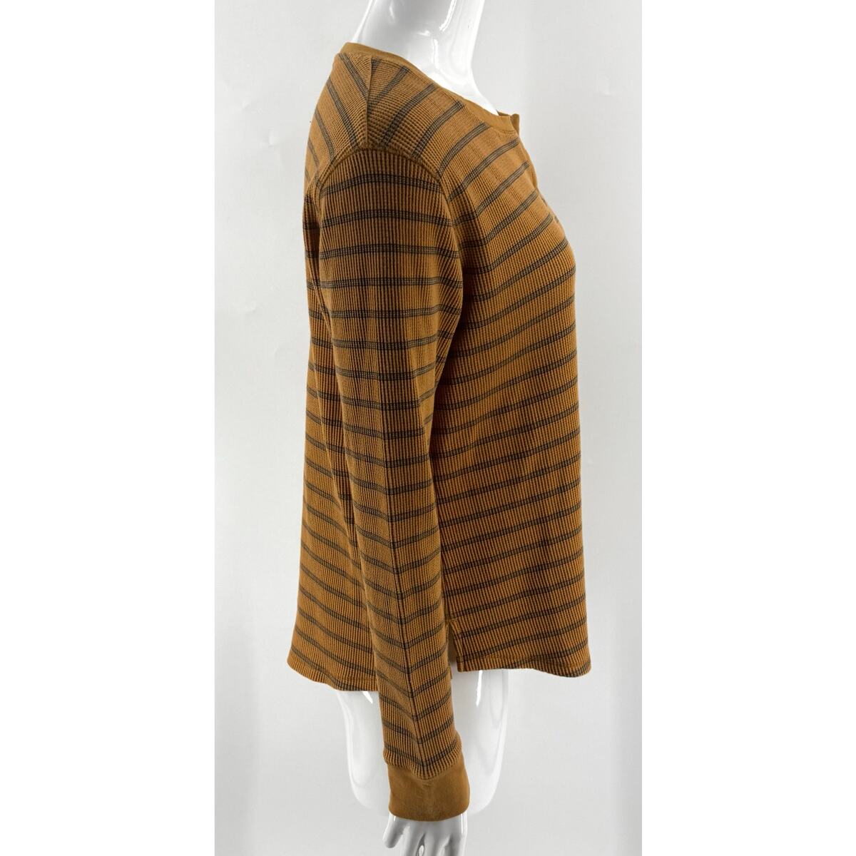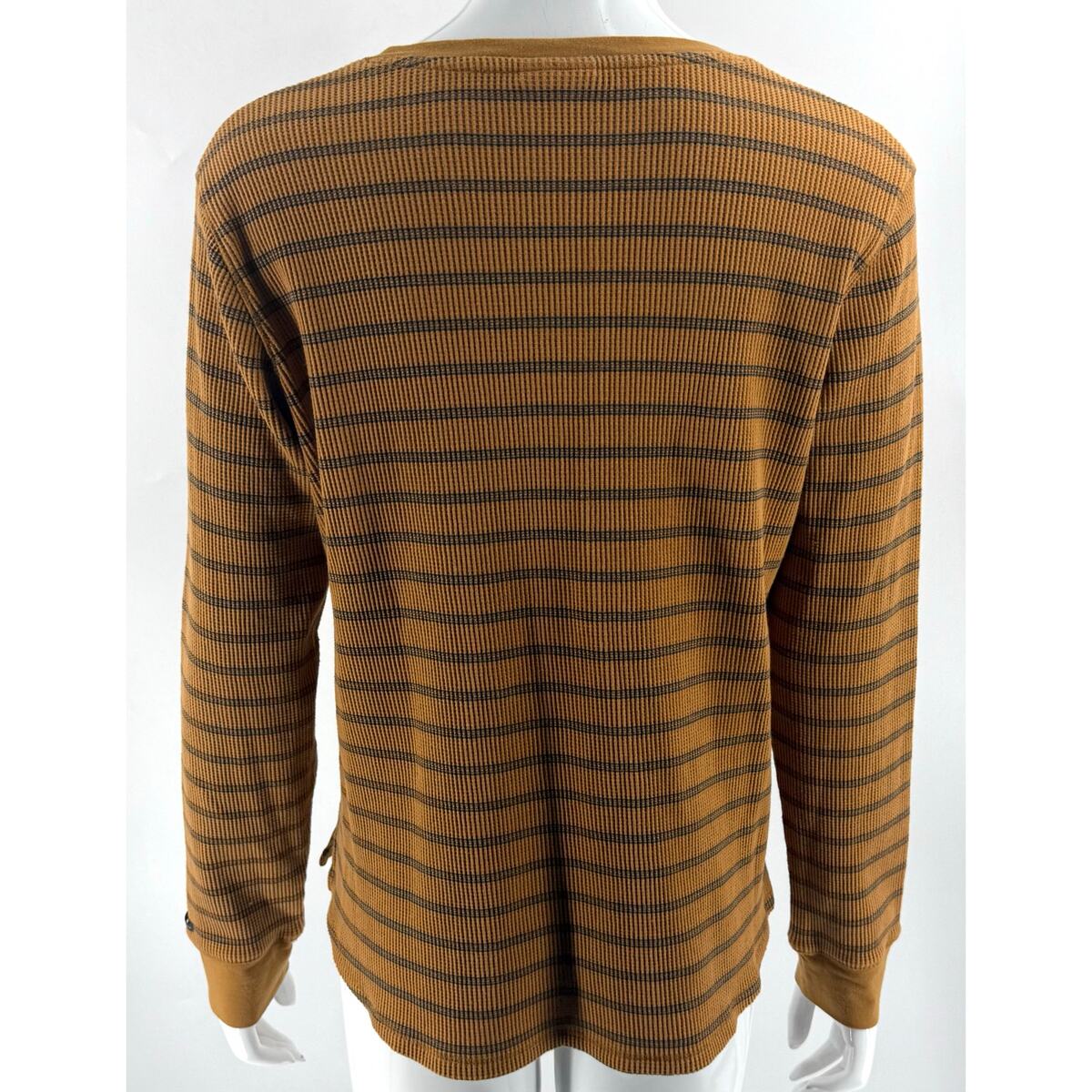 Columbia Orange Waffle Knit Thermal Top Size XL Striped Split Neck Tee Shirt