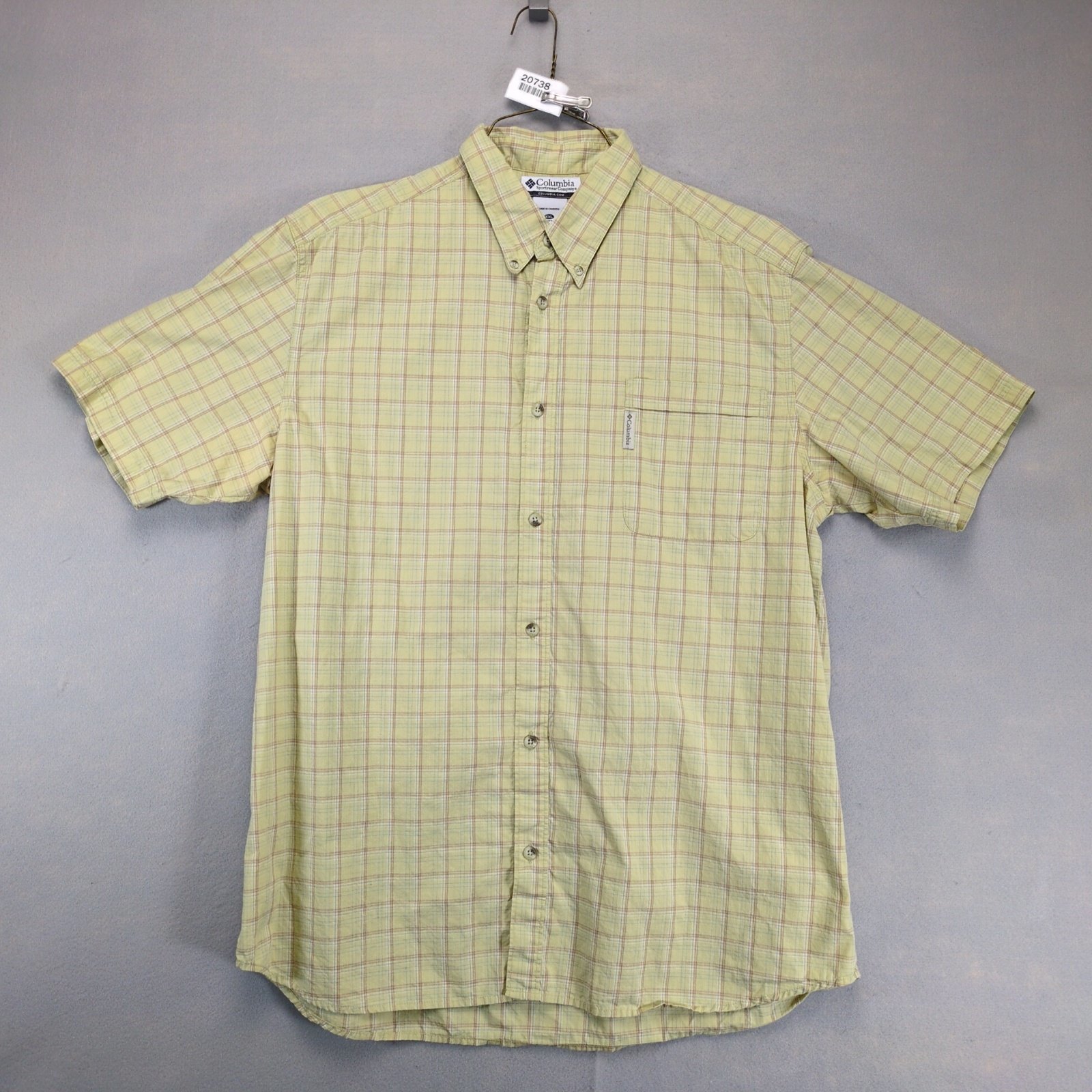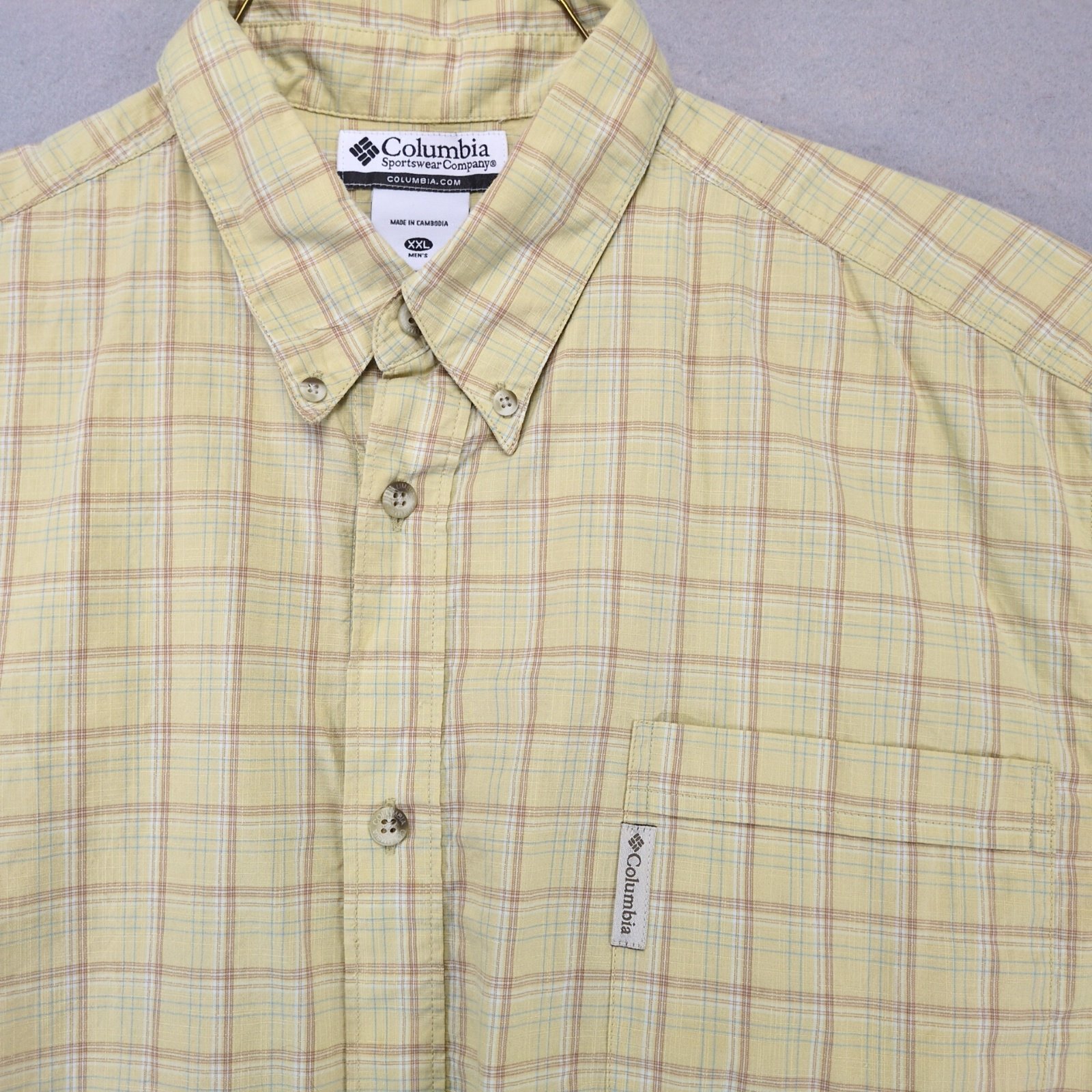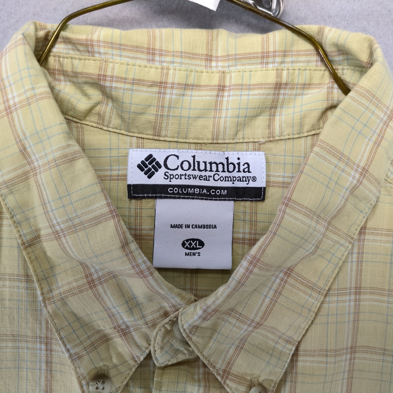- Columbia Sportswear Yellow Plaid Button Down Shirt Men's XXL Short Sleeve Hiking