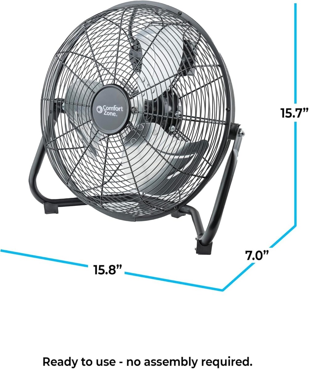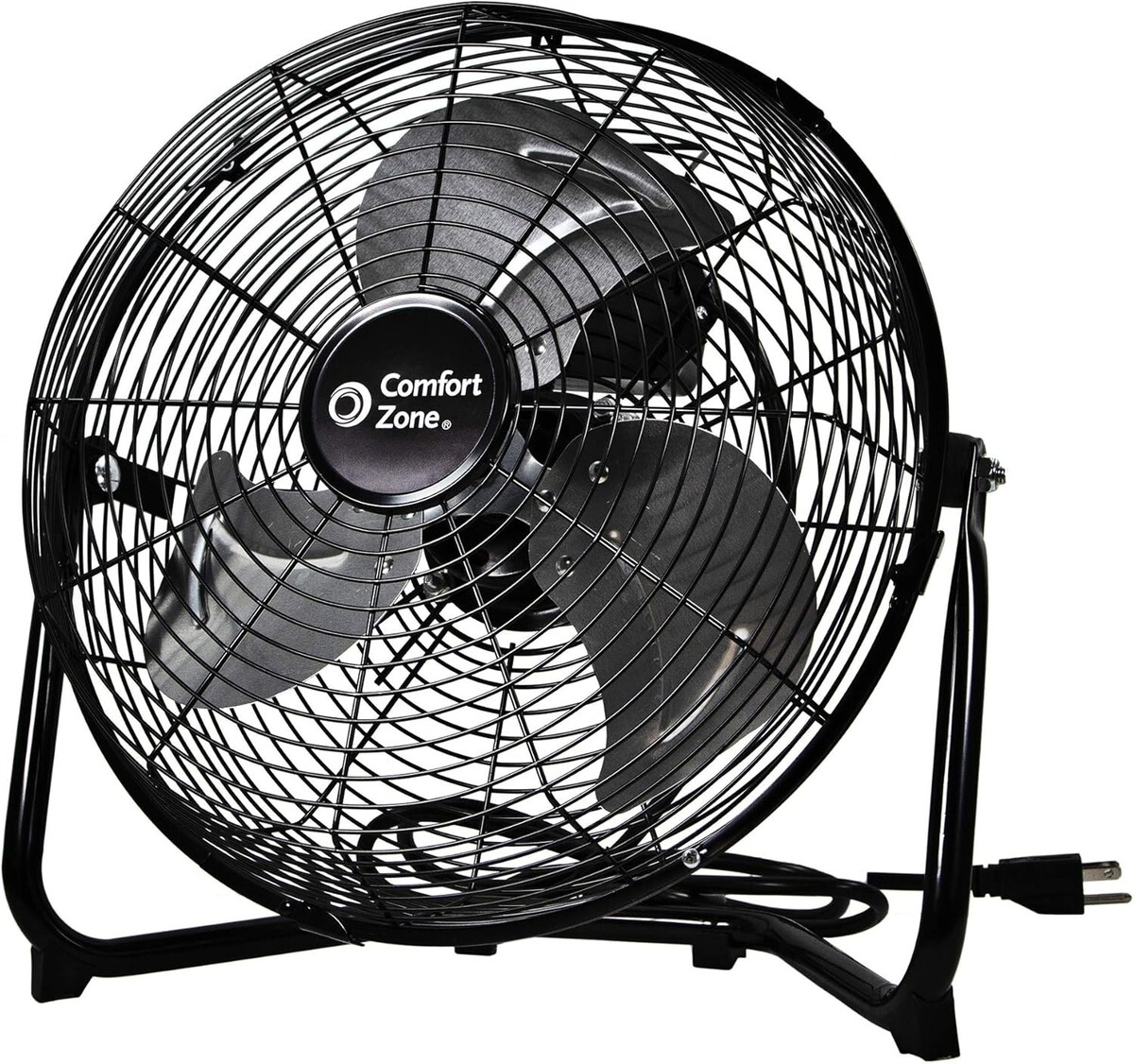 - Comfort Zone Cradle Floor Fan, 12 inches, 3 Speeds, All Metal, 180 Degree Tilt