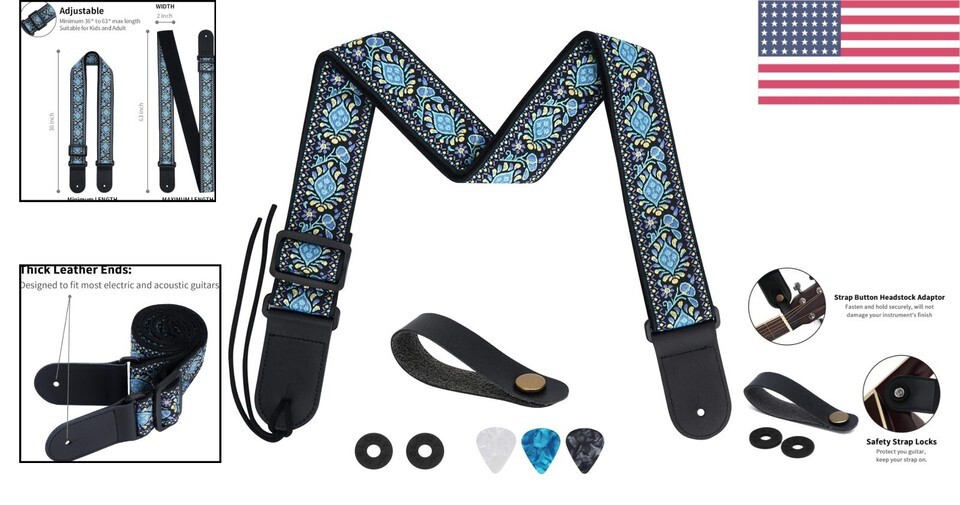 The unique retro design, vibrant colors, and the added accessories make this not just a strap, but a fashion statement. Elevate your musical journey today with a strap that provides comfort and style, allowing you to focus on what you love most ? the music.