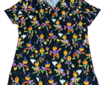 Great condition. Size tag missing, approximately a S Small. Measures 20 inches across the chest and 26 inches overall length. Super cute vibrant fall halloween scrub shirt! Please see all photos. We are a smoke free, pet friendly home. Have a great day!