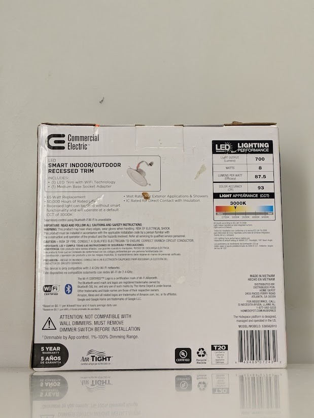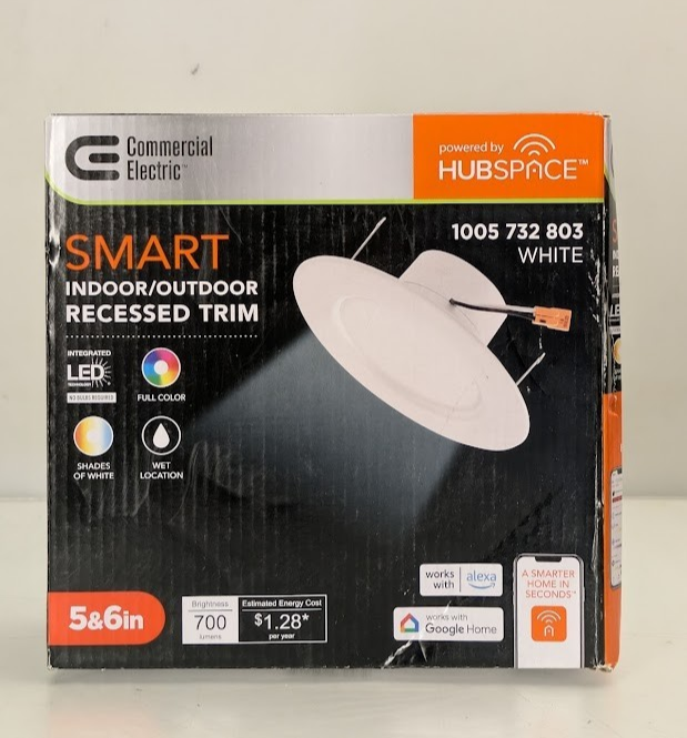 Commercial Electric 6in. SMART LED Recessed Light Trim with Hubspace App is an innovative and entertaining way to illuminate your space. Create subdued romantic lighting or express your dramatic flair. Perfect for holidays, celebrations or whatever your current mood; turn lights down low to a cool blue hue or having a party; turn lights to a popping red, orange or yellow. Set up and manage your device with the Hubspace App which is compatible with Google Home and Amazon Alexa; no HUB required. Now you are ready to create your own unique colorful lighting ambiance. Choose shade of white (2200K-6500K) or select from a full color spectrum. You can even group multiple lights together to control them from up to 30 ft. in your home. For even more convenience, you can set up for voice activation. Ideal for home, office, entertainment areas, restaurant, retail, boutique and much more.