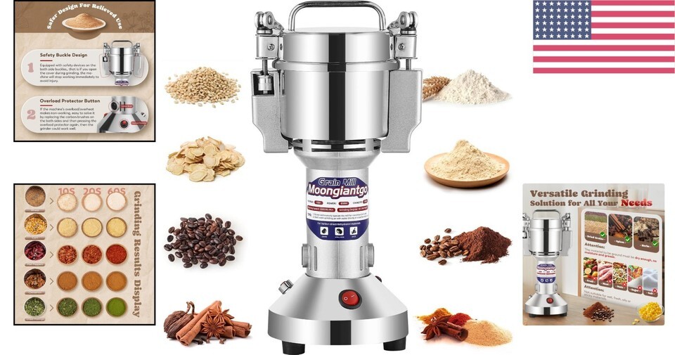 Perfect for grinding various dried and dehydrated materials, including grains, spices, coffee beans, rice, soybeans, and more.
