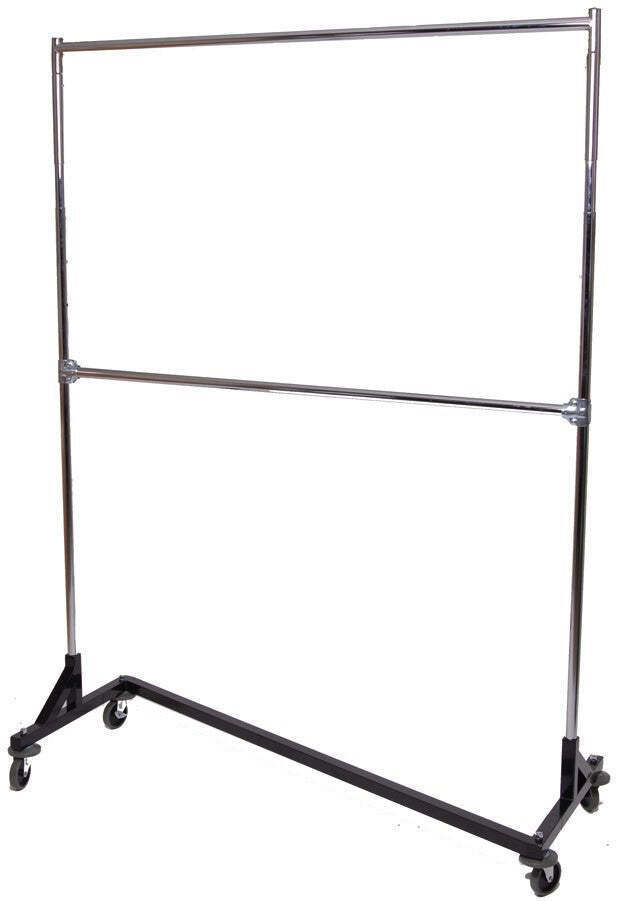 - Commercial Grade Rolling Z Garment Rack with Black Nesting Base, Double Bar and