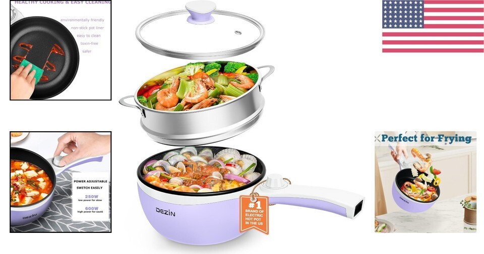 - Compact 1.5L Electric Hot Pot with Non-Stick Steamer - Perfect for Dorm Cooking