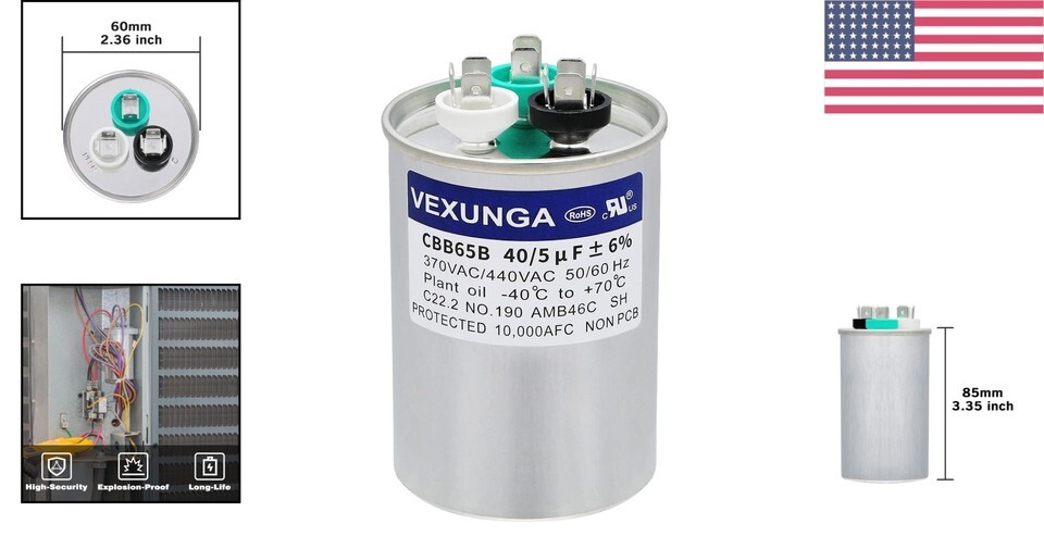 - Compact 40/5 uF Air Conditioner Capacitor - 370VAC/440VAC, Perfect Replacement
