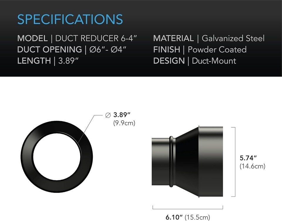 Versatile Adaptor: Connects duct openings of 6 inches to 4 inches seamlessly.