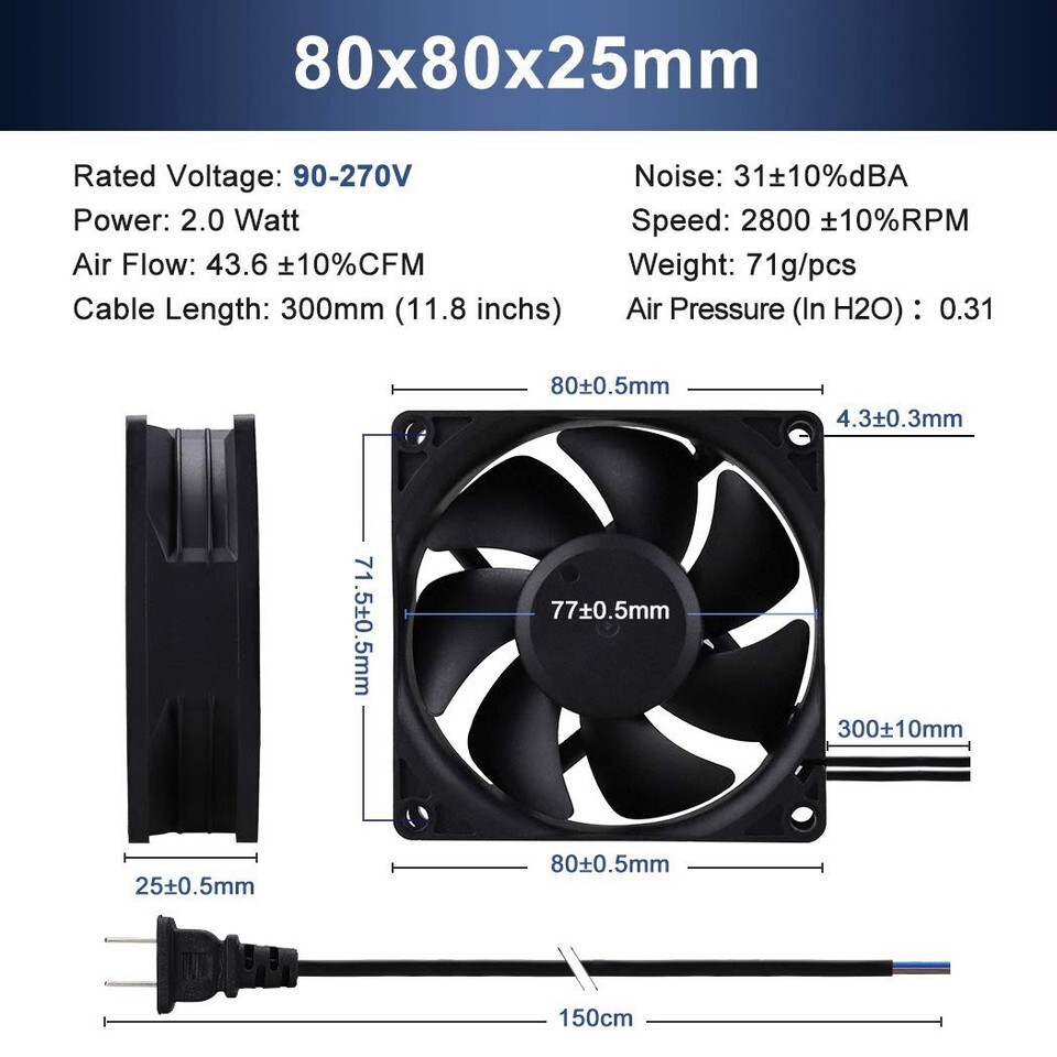- Compact 80mm x 25mm EC Axial Fan - 2800 RPM, Low Noise Electronics Cooling