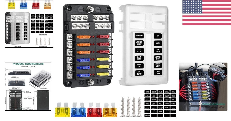 - Compact & Efficient 12-Way Automotive Fuse Box with Easy Identification Stickers