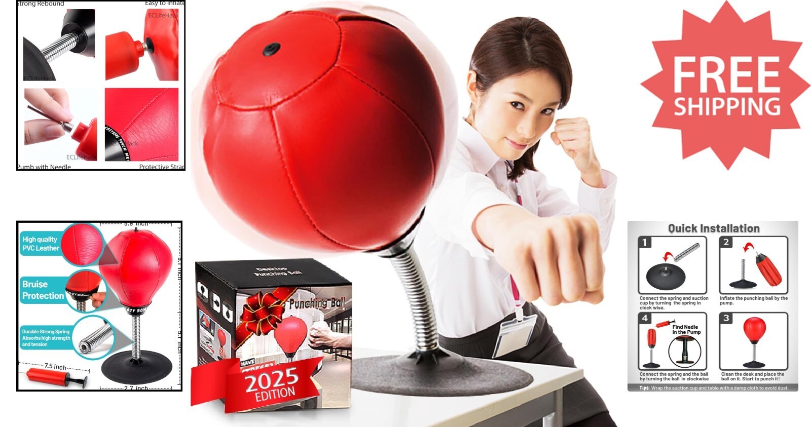 Experience ultimate stress relief with our portable desktop punching bag ? the fun, effective way to punch away office tension and hyperactivity at home or work. Its engaging design makes it perfect for adults and kids alike, serving as a playful desk toy that boosts mood and productivity. Ideal as white elephant or gag gifts for coworkers or bosses, or as a cool training tool for boxing enthusiasts. Compact and easy to set up in just one minute, this mini bag enhances hand-eye coordination, agility, and stress management for all ages. Crafted with quality for durability and fun.