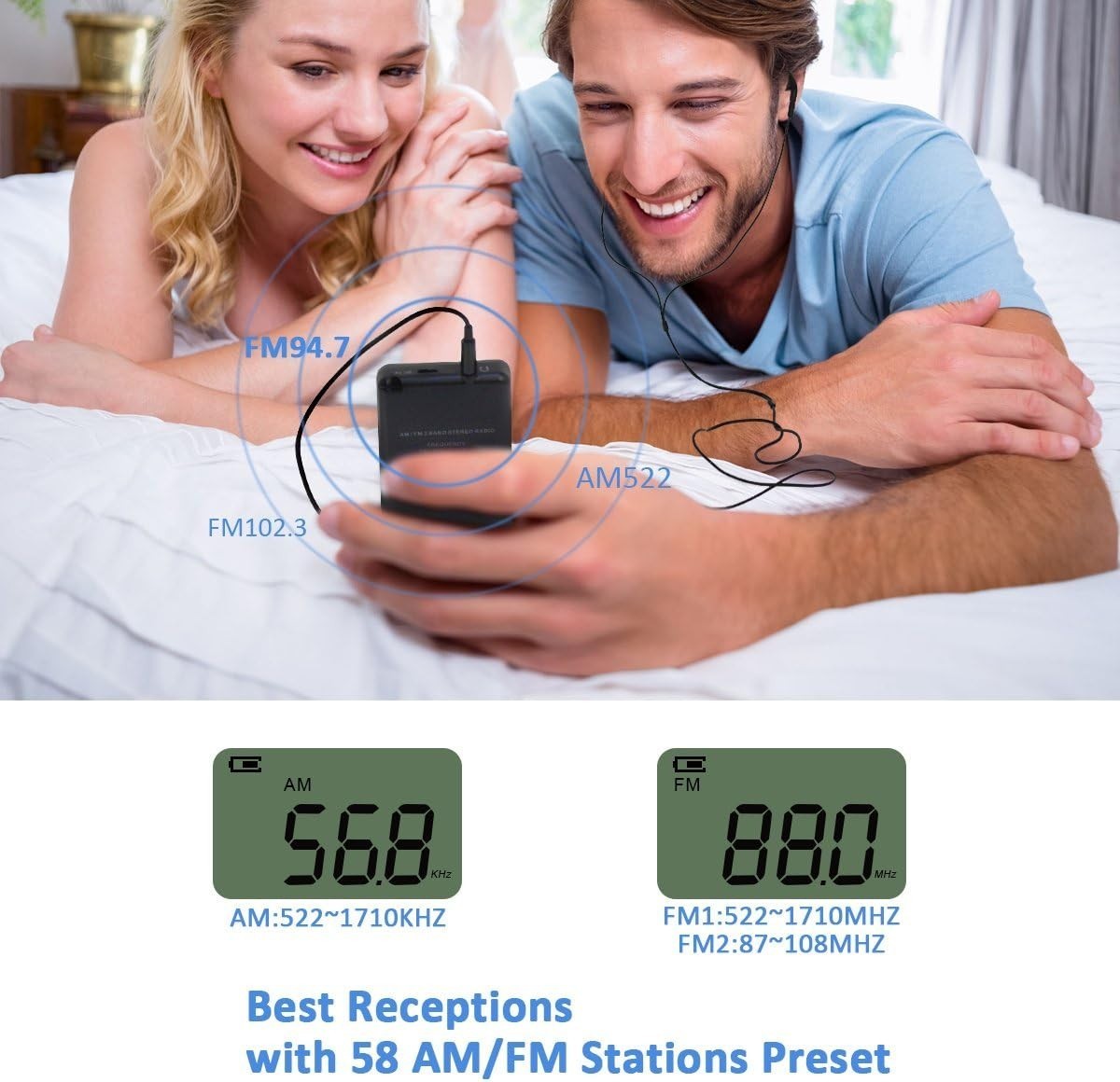 - Compact Portable AM/FM Radio with Digital Tuning & Rechargeable Battery - Black