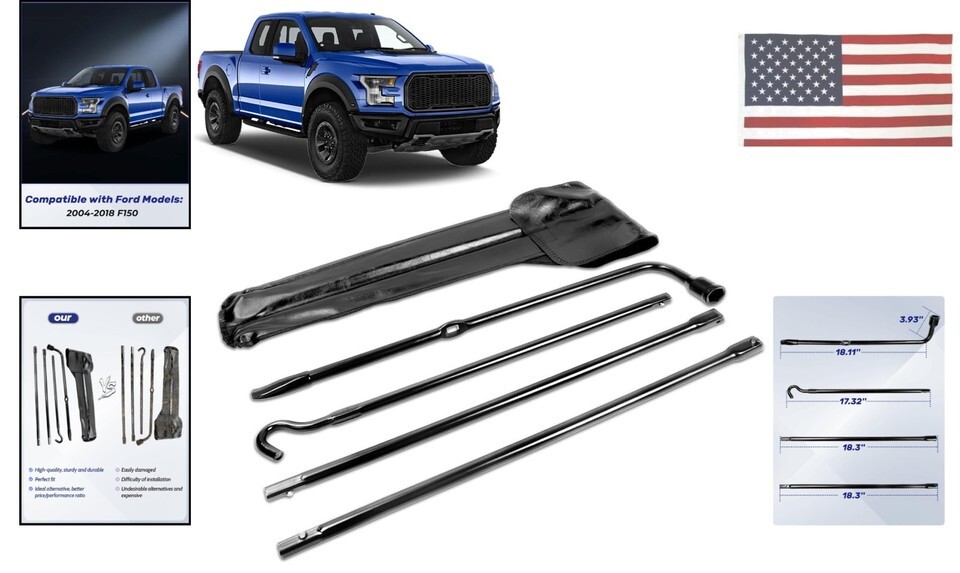 Experience peace of mind with our Compact Spare Tire Tool Set specifically designed for the Ford F-150 (2004-2018). Crafted from superior high-strength alloy steel, this efficient and lightweight toolset is not just about durability; it's about providing you the reliability you need for both routine maintenance and urgent repairs. Its rust-resistant finish and precision-engineered openings ensure each job is completed with confidence.