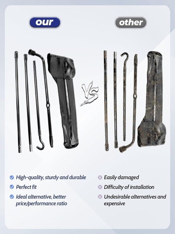 Functionality: This spare tire tool kit contains a comprehensive range of wrenches, sized for common repairs, ensuring perfect compatibility with nuts and bolts.